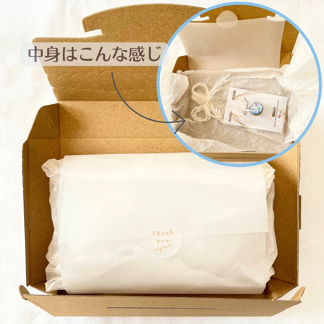 ②使用後は、柔らかい布で優しく拭き、他のアクセサリーとぶつからないように箱などに入れて保管してください。その際、密封せず、風通しを良くすることをおすすめします。