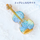 卵の殻・木製のベース・レジン・ブローチピン・真鍮粉・飾り