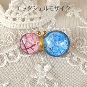 卵の殻・レジン・ガラスカボション・ブローチ金具・触覚はアーティスティックワイヤー・真鍮粉・接着剤